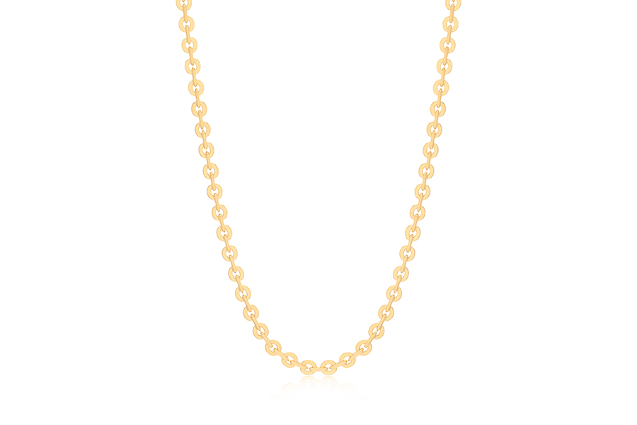 CORRENTE BANHADA EM OURO, ELO CORDA 3mm, 45cm COMPRIMENTO, EXTENSOR 5cm COMPRIMENTO E PESO 12,20g