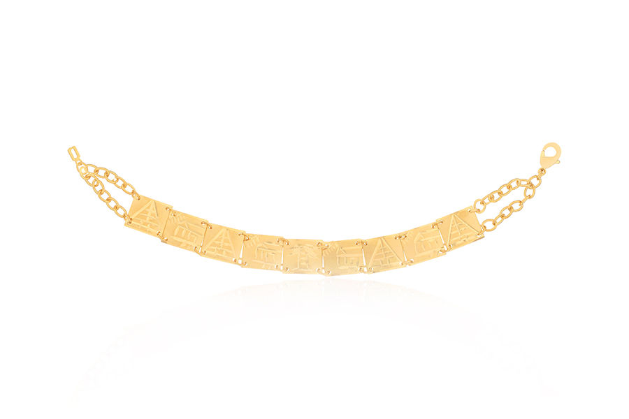PULSEIRA BANHADA EM OURO, ESCRAVA RETANGULAR 14x12mm