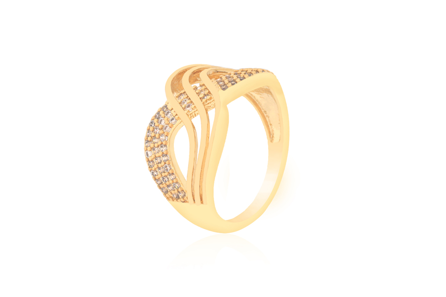 ANEL BANHADO EM OURO, TRIPLO, ZIRCÔNIA, LISO E CRAQUELADO