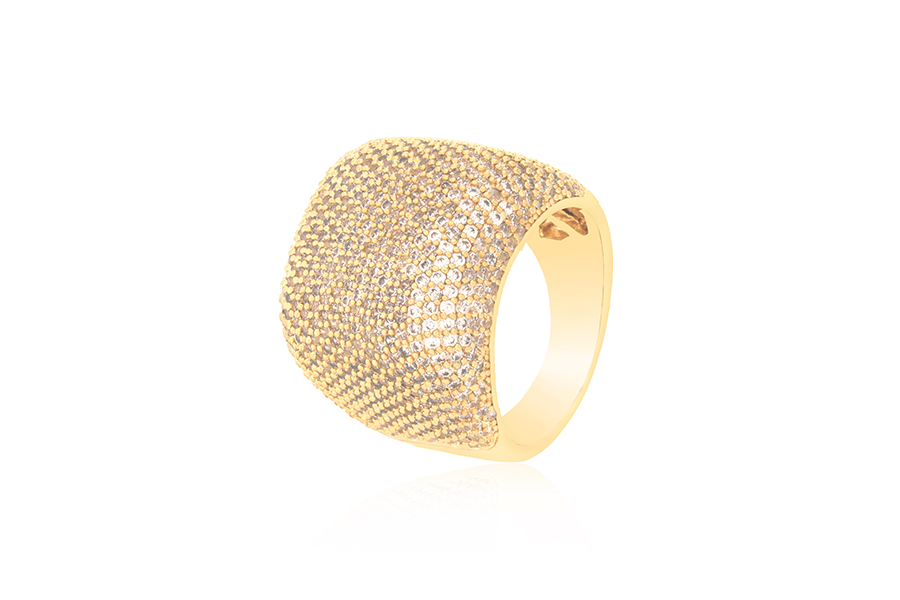 ANEL BANHADO EM OURO, TRIPLO, ZIRCÔNIA, LISO E CRAQUELADO
