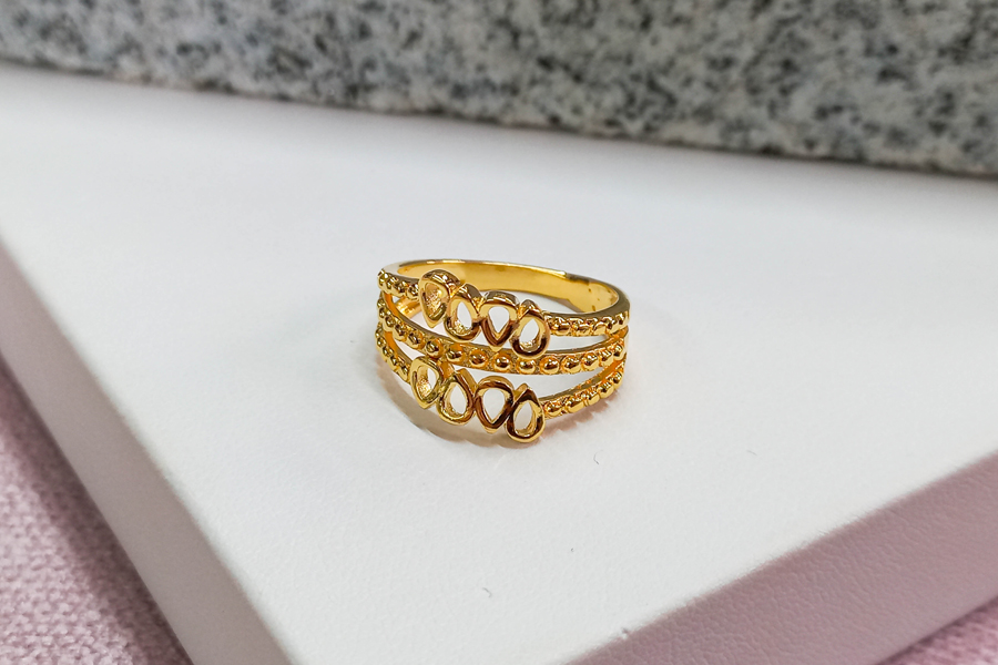 ANEL BANHADO EM OURO, APARADOR E ALIANÇA CORAÇÃO COM BANHADO EM RÓDIO BRANCO