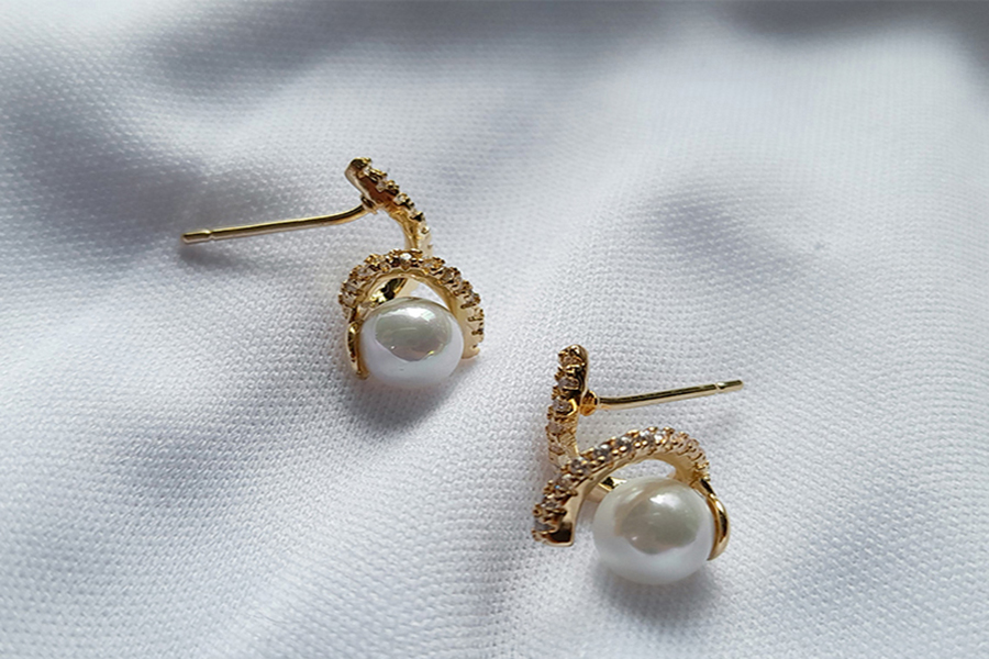 BRINCO BANHADO EM RÓDIO BRANCO, GOTA MADREPÉROLA 14x7mm