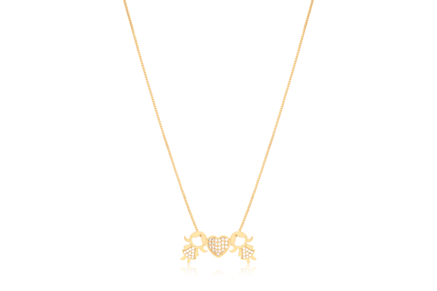 GARGANTILHA BANHADA EM OURO, ELO 2,20mm, 80cm COMPRIMENTO, PONTO DE LUZ E RELICÁRIO CORAÇÃO 13,50mm LARGURA