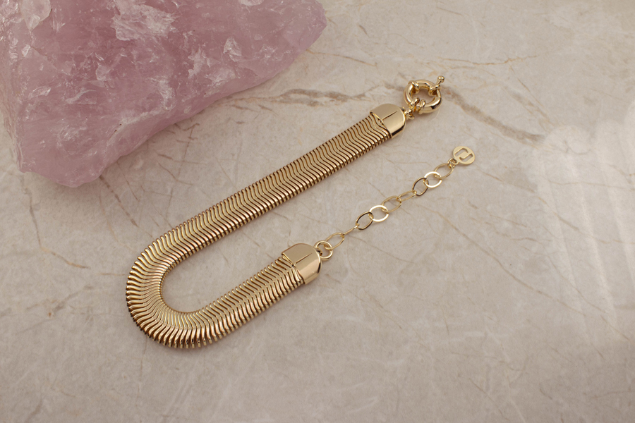 PULSEIRA BANHADA EM OURO, CORRENTE ELO LACRAIA 10mm LARGURA E PESO 15g