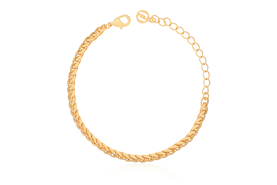 PULSEIRA BANHADA EM OURO, INFANTIL, MELINDROSA, ELO VENEZIANA LONGA 1,50mm ESPESSURA, CHAPINHA COM MENINO 24mm COMPRIMENTO E EXTENSOR 3,50cm COMPRIMENTO