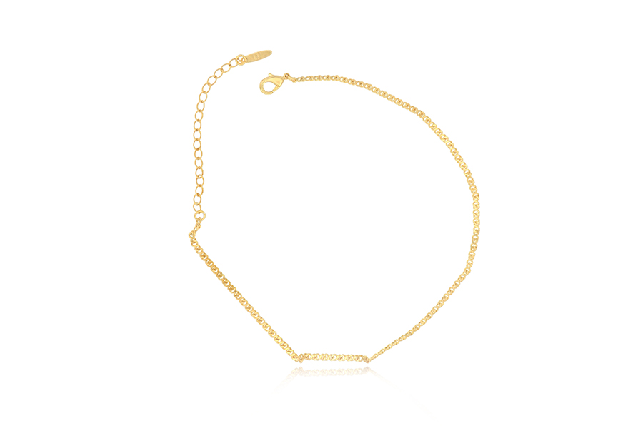TORNOZELEIRA BANHADA EM OURO, CORRENTE ELO 2,10mm LARGURA, 22cm COMPRIMENTO E PESO 2,10g