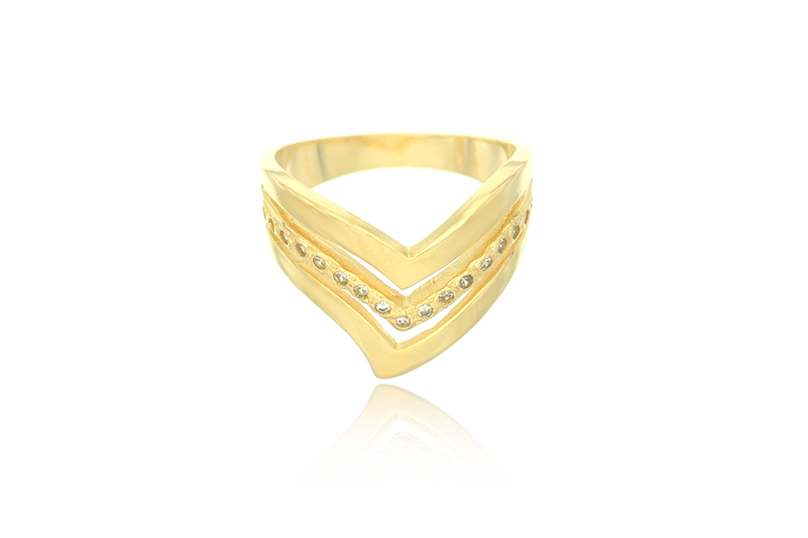 ANEL BANHADO EM OURO, TRIPLO, ZIRCÔNIA, LISO E CRAQUELADO