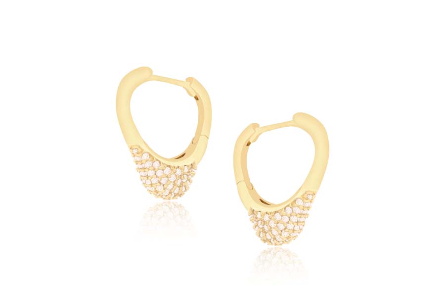 BRINCO BANHADO EM OURO, OVAL 7X5mm, COM 11 ZIRCÔNIAS BRANCAS OU NEGRAS
