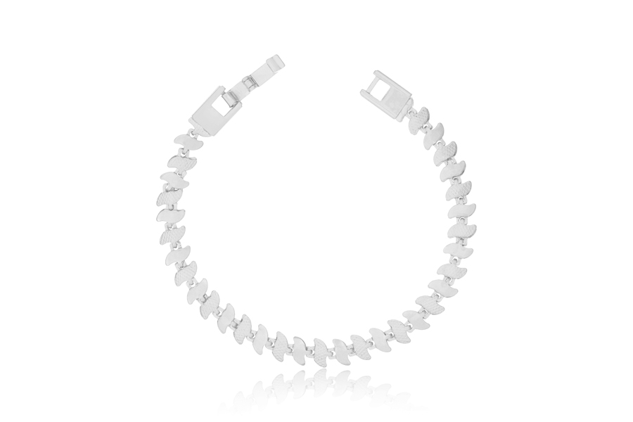 PULSEIRA BANHADA EM RÓDIO BRANCO, ELO 6,40mm LARGURA E 18cm COMPRIMENTO