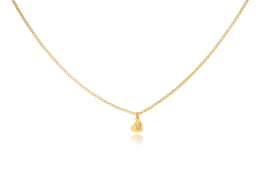 GARGANTILHA BANHADA EM OURO, ELO PORTUGUÊS 5mm DIÂMETRO, 40cm COMPRIMENTO E CORAÇÃO 23,50mm LARGURA
