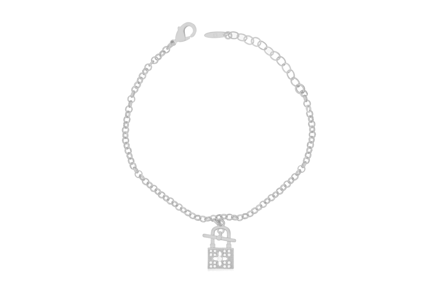 PULSEIRA BANHADA EM RÓDIO BRANCO, ELO PORTUGUÊS 2,50mm, 16cm COMPRIMENTO, EXTENSOR 5cm E CADEADO 8mm LARGURA