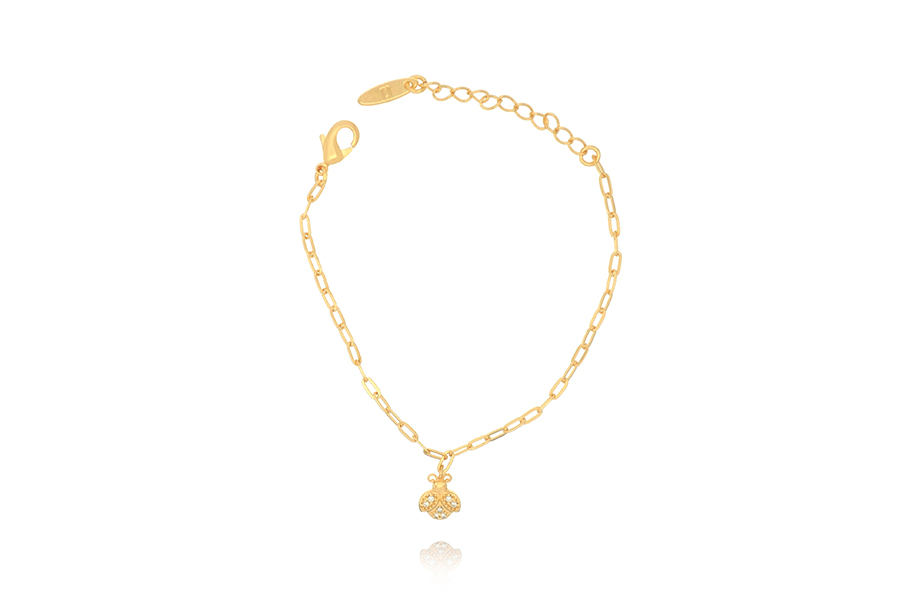 PULSEIRA INFANTIL BANHADA EM OURO, ELO CARTIER 4,20X1,90mm, 13cm COMPRIMENTO E JOANINHA 7mm LARGURA