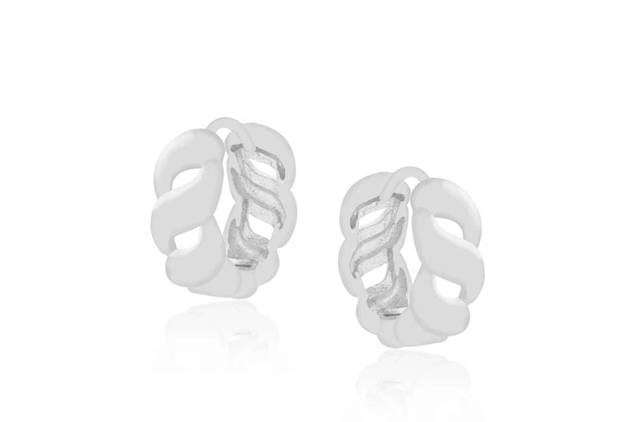 BRINCO EM PRATA, ARGOLINHA OVAL 13mm ALTURA, COM BANHO DE RÓDIO BRANCO, COLEÇÃO AURA