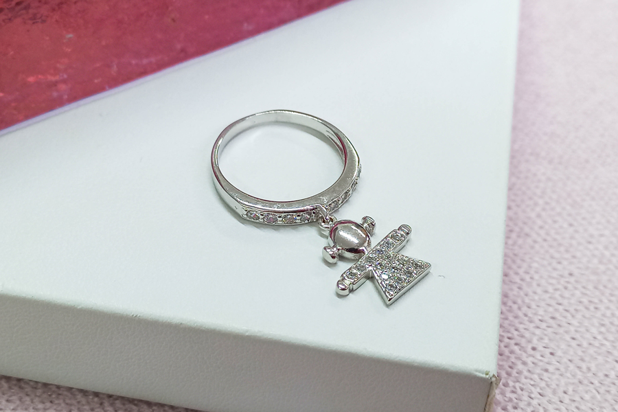 ANEL BANHADO EM RÓDIO BRANCO, SOLITÁRIO 6mm, LINHA TRADICIONAL