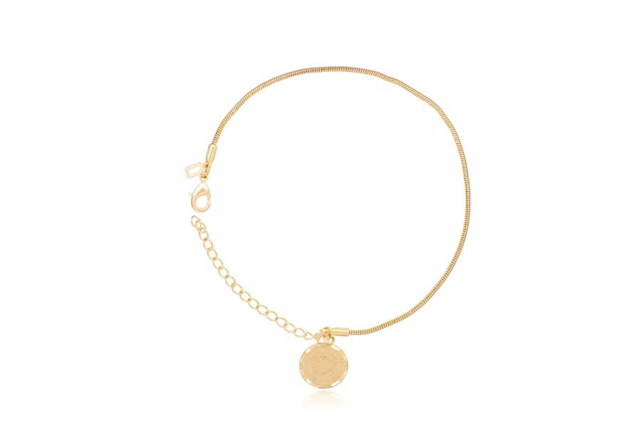 PULSEIRA BANHADA EM OURO, ELO RABO DE RATO 1,40mm, 16cm E 17cm COMPRIMENTO, EXTENSOR 5cm E PINGENTE SÃO BENTO 12mm