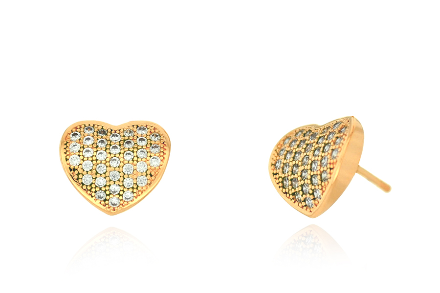 BRINCO EM PRATA, CORAÇÃO CRAVEJADO VAZADO, 14mm ALTURA