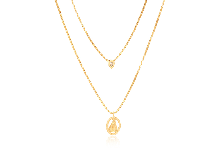 GARGANTILHA BANHADA EM OURO, ELO 2,20mm, 80cm COMPRIMENTO, PONTO DE LUZ E RELICÁRIO CORAÇÃO 13,50mm LARGURA