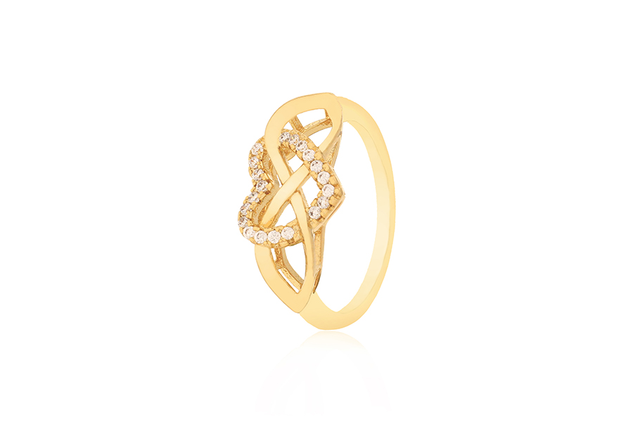 ANEL BANHADO EM OURO CORAÇÃO 7mm ALTURA E ZIRCÔNIAS BRANCAS OU COLORIDAS