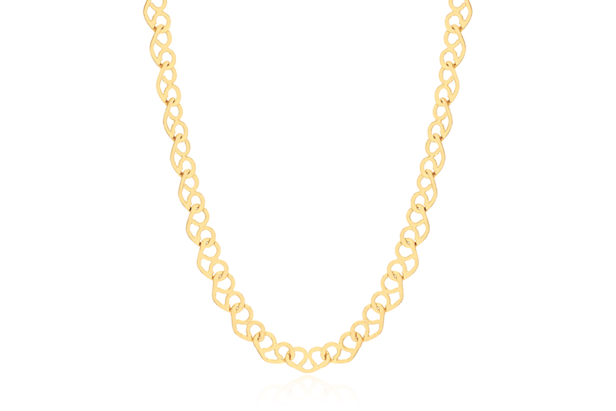 GARGANTILHA BANHADA EM OURO, ELO PORTUGUÊS 5mm DIÂMETRO, 40cm COMPRIMENTO E CORAÇÃO 27mm LARGURA, LISO OU ACETINADO