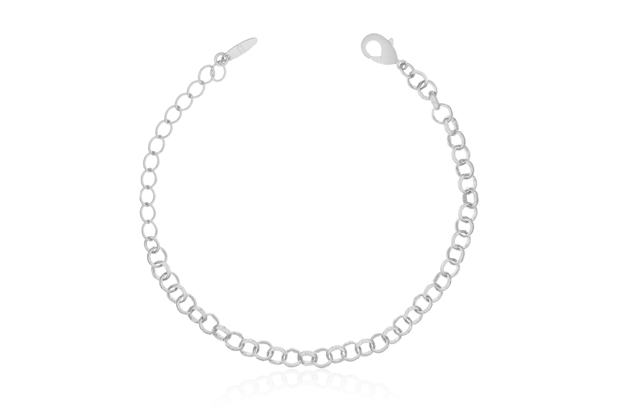 PULSEIRA BANHADA EM PRATA LEVE, CORRENTE ELO PORTUGUÊS 5mm, 17cm COMPRIMENTO, EXTENSOR 5cm E PESO 4,60g