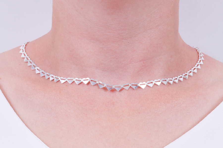 GARGANTILHA BANHADA EM RÓDIO BRANCO, RIVIERA CORAÇÃO 5,50mm LARGURA, 45cm COMPRIMENTO, PARA ZIRCÔNIA BRANCA OU COLORIDA