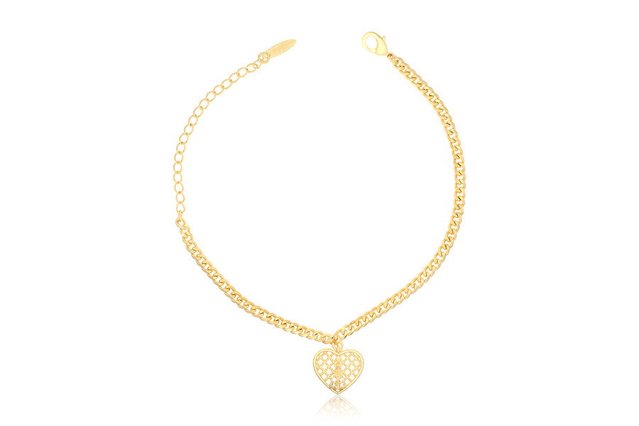 PULSEIRA BANHADA EM OURO, ELO GRUMET 3mm, 16cm COMPRIMENTO, EXTENSOR 5cm COMPRIMENTO E CORAÇÃO NOSSA SENHORA APARECIDA 13mm LARGURA