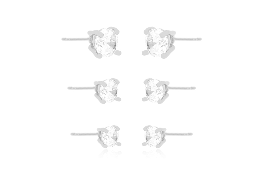 BRINCO EM PRATA, 1 ZIRCÔNIA OVAL E 2 ZIRCÔNIAS REDONDAS, 9,50mm ALTURA