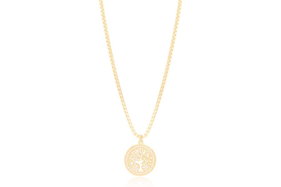GARGANTILHA BANHADA EM OURO, ELO 2,20mm, 80cm COMPRIMENTO, PONTO DE LUZ E RELICÁRIO CORAÇÃO 13,50mm LARGURA