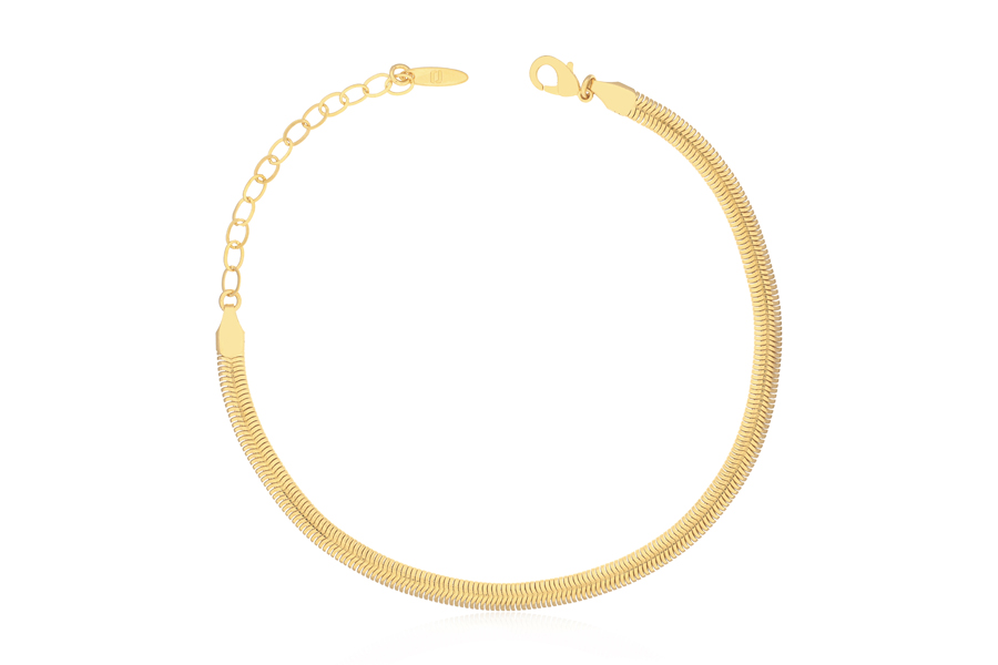 PULSEIRA BANHADA EM OURO, CORDA 4mm, EXTENSOR 5cm COMPRIMENTO E PESO 9,10g, 18cm