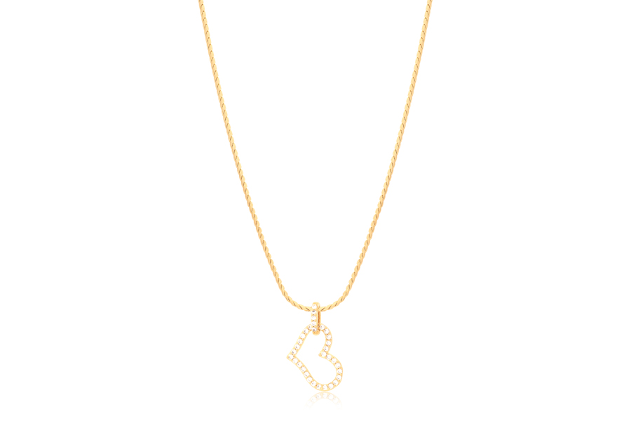 GARGANTILHA BANHADA EM OURO, ELO PORTUGUÊS 5mm DIÂMETRO, 40cm COMPRIMENTO E CORAÇÃO 27mm LARGURA, LISO OU ACETINADO