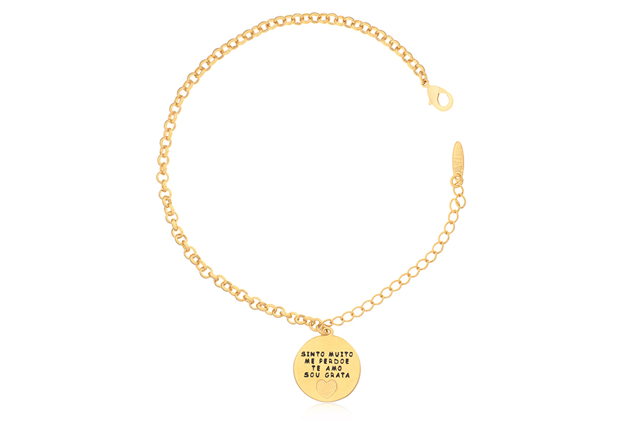 PULSEIRA BANHADA EM OURO, ELO PORTUGUÊS 3mm, 16cm COMPRIMENTO, EXTENSOR 5cm COMPRIMENTO E PINGENTE SINTO MUITO... 16mm DIÂMETRO COM CORAÇÃO